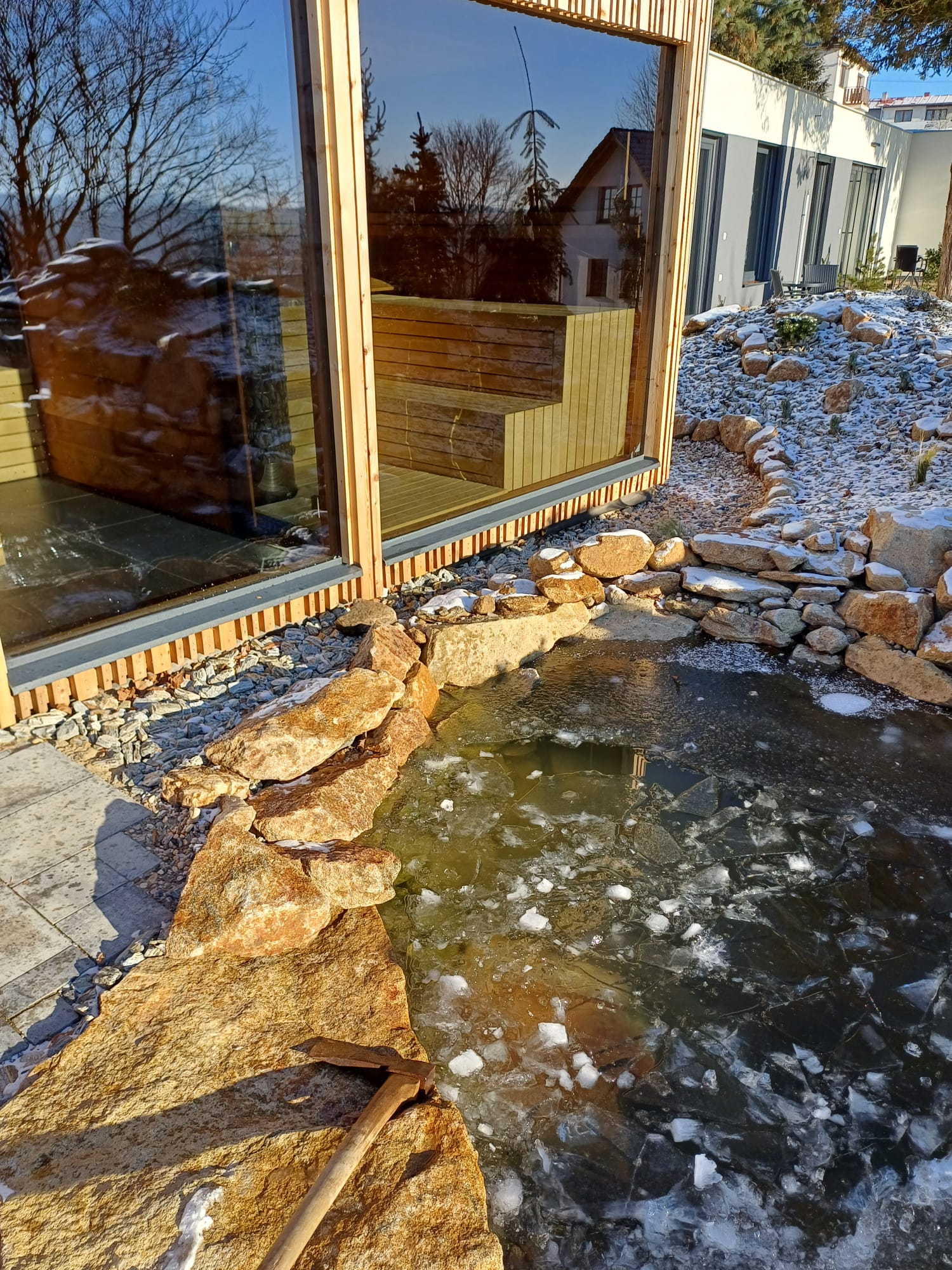 Zažijte ten pravý relax v provoněném cedrovém domku. Sauna, vířivka a odpočívárna jsou Vám plně k dispozici. Nechte se hýčkat ve wellness domku! Od prostorné vířivky se přes odpočívárnu s minibarem dostanete do cedrové sauny, kde si vychutnáte výhled přes zurčící jezírko až do dalekého okolí. Samozřejmostí je venkovní sprcha a toaleta.