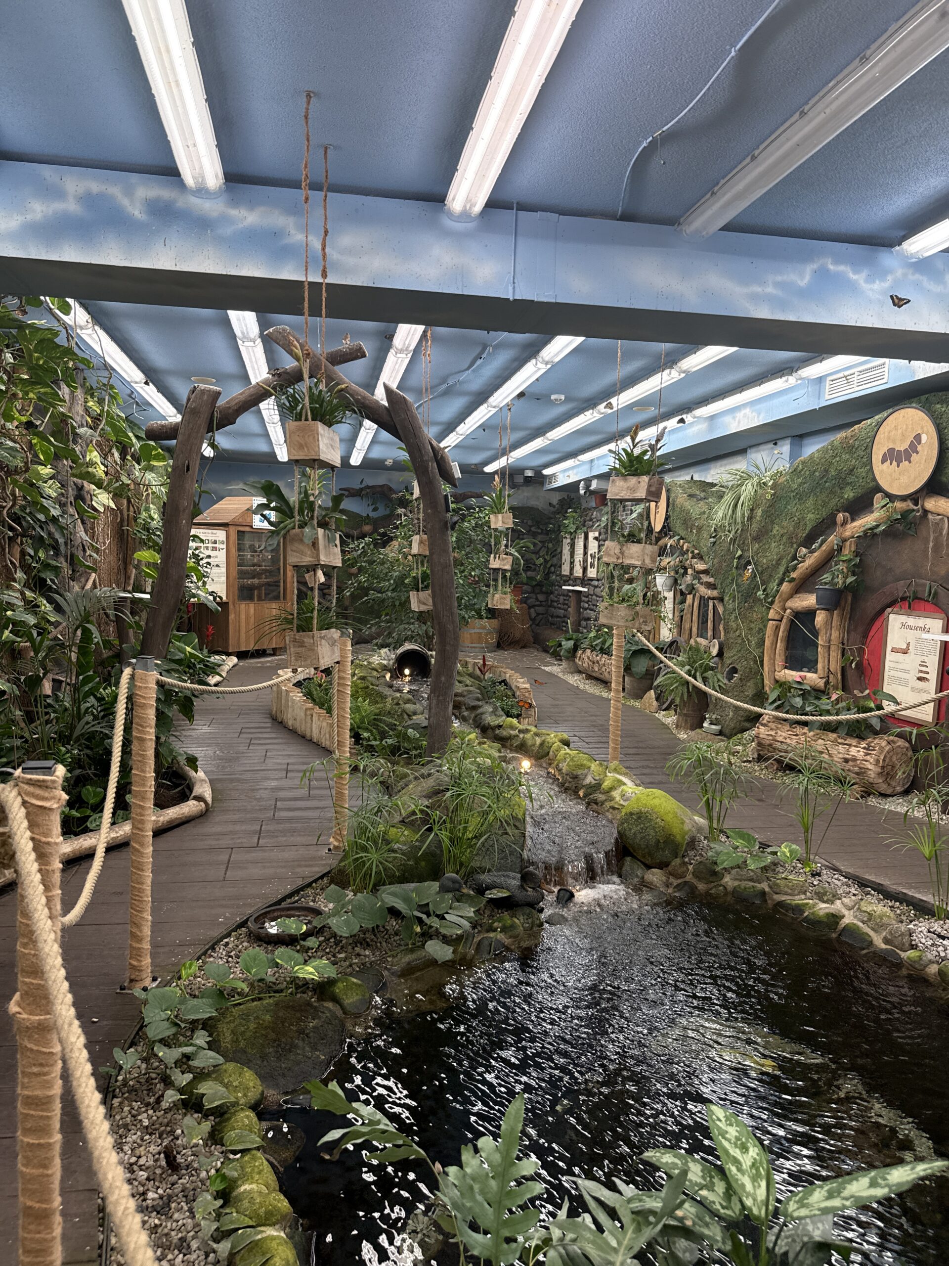 Hned u motýlího domu najdete příjemné hřiště se skluzavkami, houpačkami a prolézačkami, kde se děti zabaví a rodiče si mohou v klidu odpočinout.
