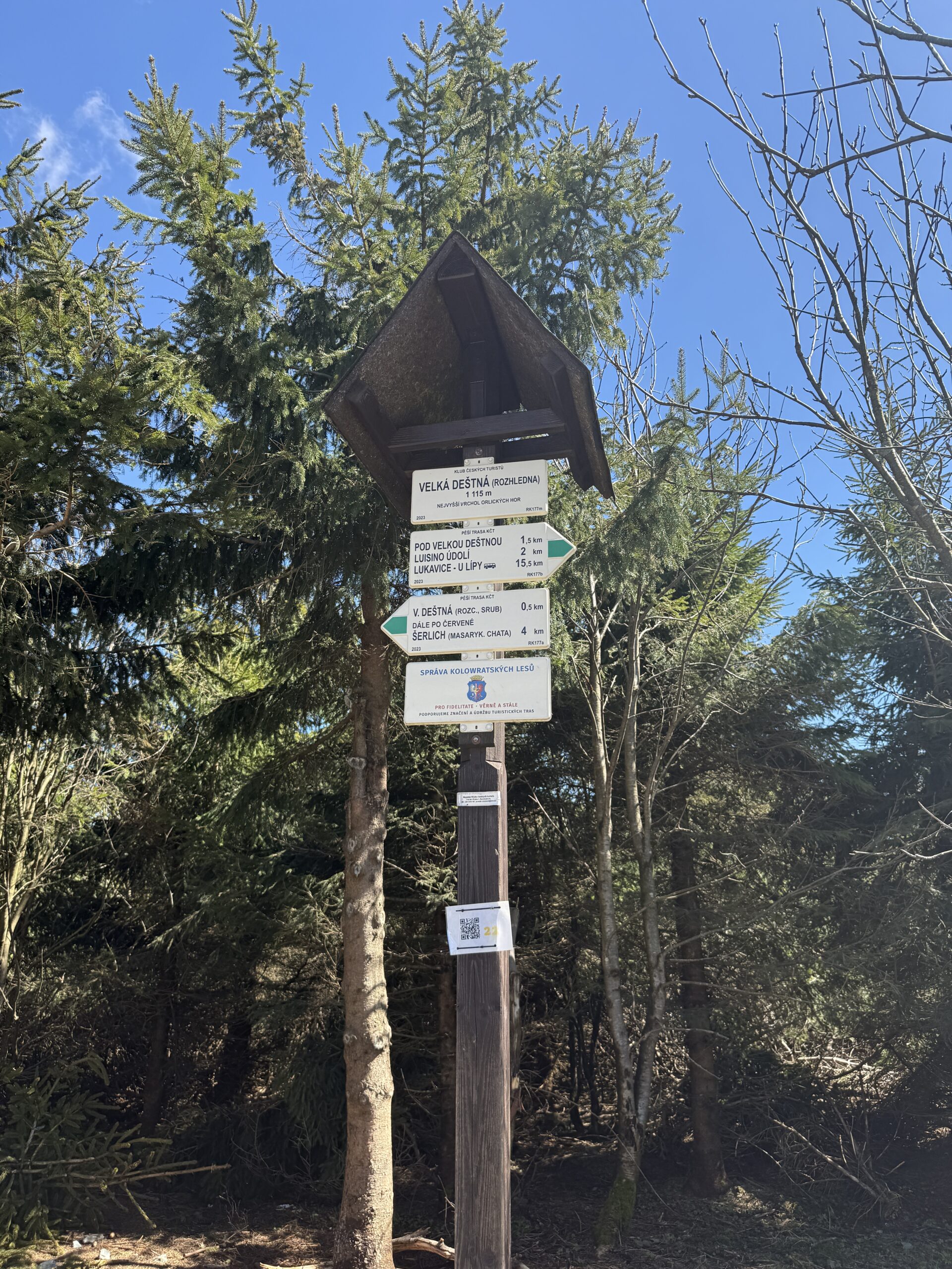 Velká Deštná leží v 1116 m. n. m. a je nejvyšší horou Orlických hor. Na vrcholu Velké Deštné se nachází stejnojmenná rozhledna. Původně zde stála dřevěná rozhledna, ale v roce 2010 byla stržena. V roce 2019 na vrcholu hory otevřeli novou kovovou rozhlednu. Z rozhledny se vám naskytne krásný výhled na Orlické hory, na polské Stolové hory, Kralický Sněžník a také na Krkonoše. Na Velkou Deštnou můžete vyrazit ze sedla pod Šerlichem (3,7 km) nebo z Luisina údolí (2,1 km). Přes vrchol Velké Deštné vede hlavní hřebenová cesta Orlických hor (Jiráskova cesta – červeně značená).